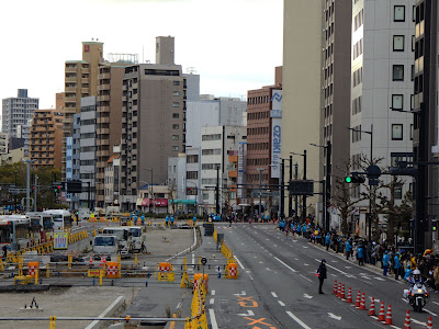 広島駅前後で渋滞に巻き込まれたのか5号線も続行モード。結局後ろの700も同じターンで渡っていきました。